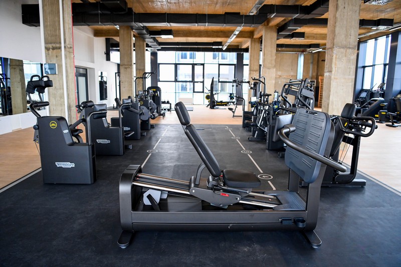 Teretana je podijeljena na tri segmenta. Na prizemlju su grupni i funkcionalni treninzi.