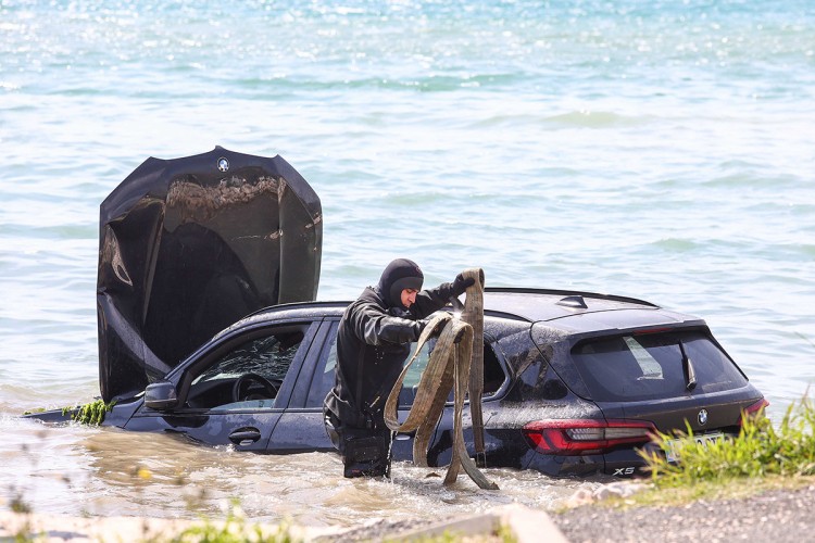 Vozačica BMW-a slovenačkih registarskih oznaka udarila je parkirani kombi u trogirskom trajektnom pristaništu, te su oba vozila završila u moru.