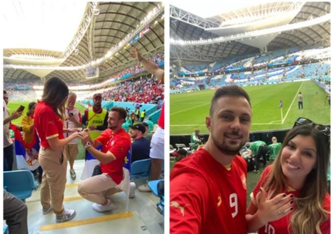 Otišli su u Katar na jedan dan i to putovanje pamtiće cijeli život. Jovana Radosavljević i Nemanja Stanojević iz Petrovca na Mlavi vjerili su se na utakmici između reprezentacije Srbije i Kameruna, odigrane prije četiri dana na Svjetskom prvenstvu u ovoj zemlji. Kažu da se njeno “da” na tribinama slavilo kao gol!