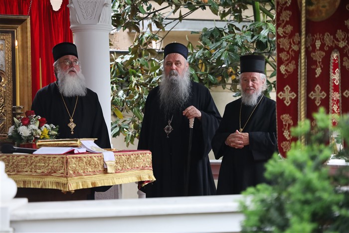 NJegovo Preosveštenstvo episkop novogračanički i srednjezapadnoamerčki g. Longin je, po blagoslovu domaćina Preosvećenog vladike Fotija koji je molitveno prisustvovao, služio večernje praznično bogosluženje sa petohljebnicom uz sasluženje protojereja-stavrofora LJube Bogdanovića, arhijerejskog namjesnika bijeljinskog; protojereja-stavrofora Dragana Ilića, starješine hrama Svetog Pantelejmona u bijeljinskom naselju Krušik; protojereja-stavrofora Gorana Nenića, parohijskog sveštenika u hramu Svetog Georgija u Bijeljini, protođakona Nemanje Spasojevića i Lazara Ilića, eparhijskih đakona.
