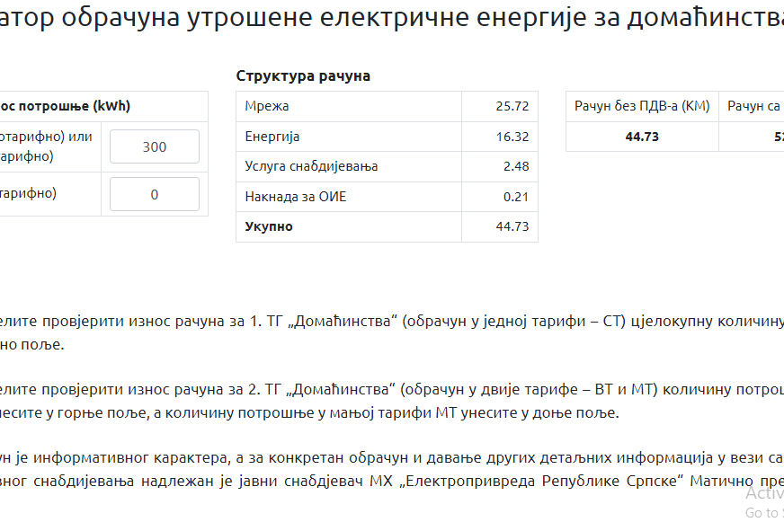 Građani mogu provjeriti utrošenu električnu energiju putem kalkulatora, koji se nalazi na internet stranici https://reers.ba/.