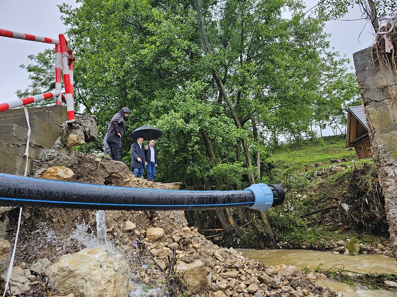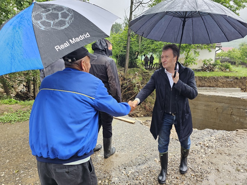On je posjetio i dvije kuće porodice Tomić u Donjoj Krćini koja broji 17 članova domaćinstva, a kojima je vodena bujica odnijela put.