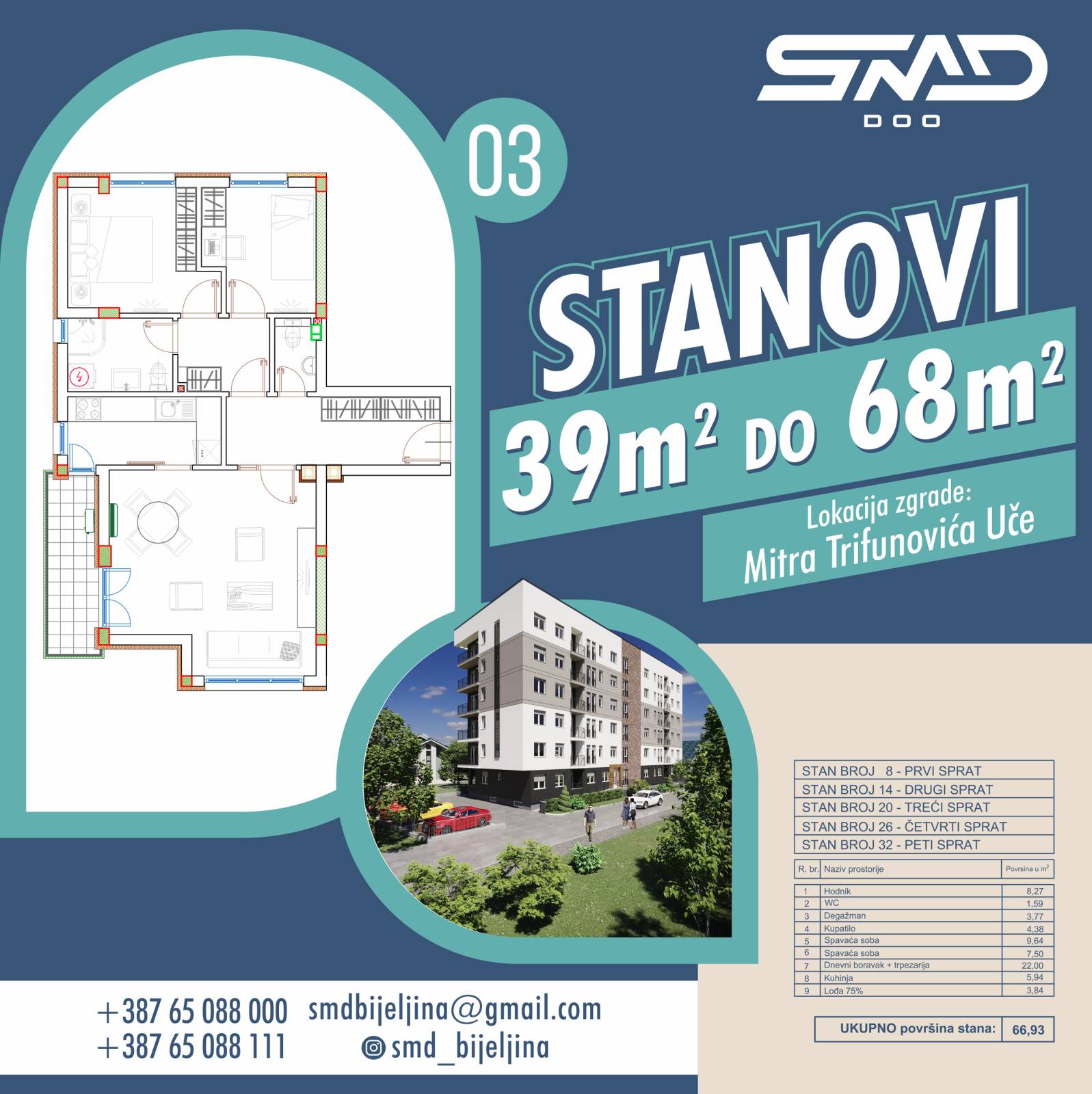 Do 31. decembra ove godine, na atraktivnoj lokaciji, u Ulici Mitra Trifunovića Uče u Bijeljini, možete da kupite stanove po akcijskim cijenama.