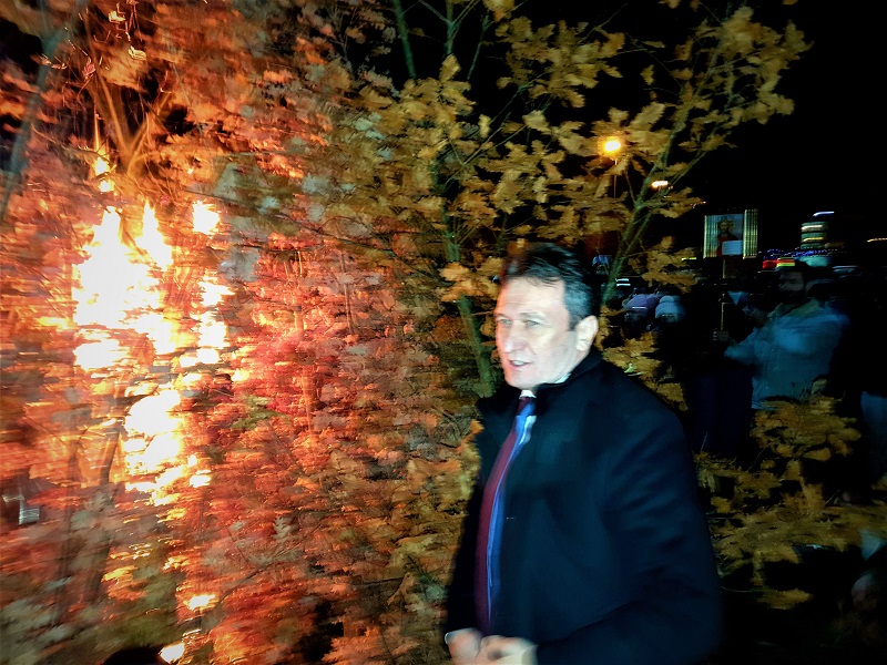 Badnjak je naložio načelnik Ugljevika Vasilije Perić zajedno sa dječakom Budimirom Simikićem i predsjednikom Crkvenog odbora Goranom Jovičićem.