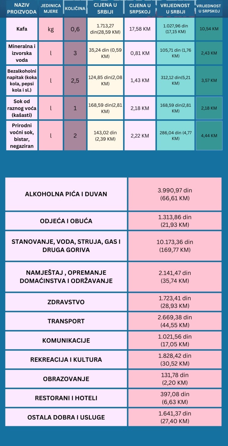 Za hranu, odjeću i obuću, zdravstvo, stanovanje, obrazovanje, kulturu i druge životne zahtjeve ili jednostavnije rečeno za svakodnevni život tročlana porodica u Srbiji u septembru prošle godine, prema podacima Ministarstva unutrašnje i spoljne politike Srbije, morala je izdvojiti 52.254,08 dinara, odnosno oko 872,20 KM, što je zapravo iznos minimalne potrošačke korpe u toj zemlji.