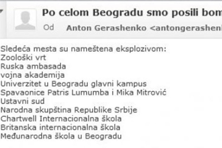 "Novostima" stigao uznemirujući mejl: Postavili smo bombe po cijelom Beogradu (FOTO)