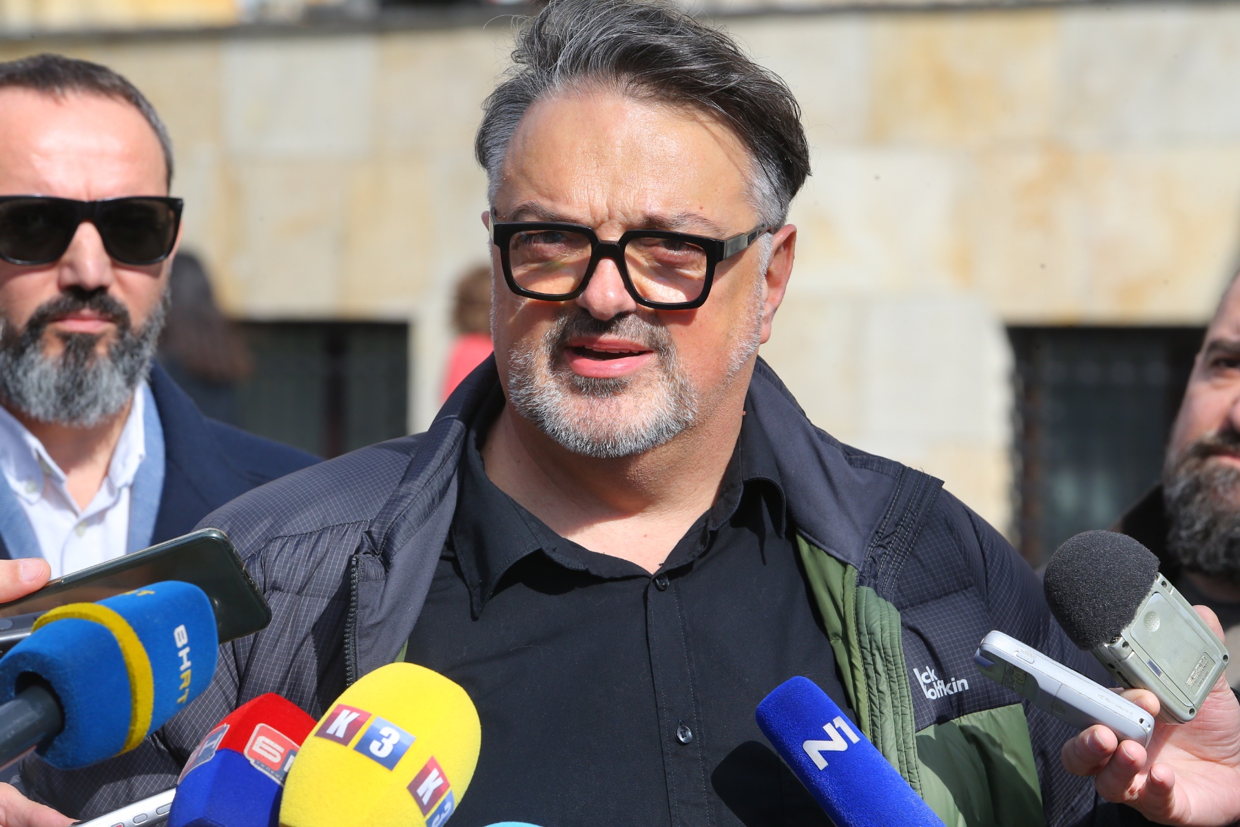 Pres konferencija Morače, Trifunovića i Vukelića održana je ispred Palate predsjednika Republike Srpske dok je istovremeno u Palati trajala sjednica koalicionih partnera.