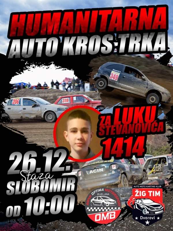 “Narednog vikenda tačnije u nedelju 26.12. 2021. god. sa početkom od 10 časova, na stazi Slobomir odrzaće se Humanitarna auto kros trka za Luku Stevanovića iz Ugljevika”, naveli su organizatori trke.