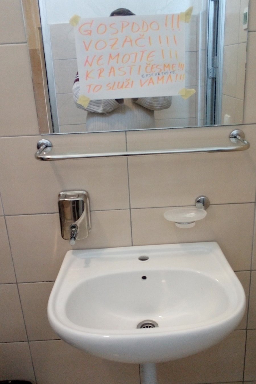 UIO još jednom apeluje još jednom na sve vozače koji koriste toalete i tuš kabine u carinskoj ispostavi Gradiška da se ponašaju domaćinski i da ne skidaju i odnose česme sa lavaboa i crijeva sa tuševa u tuš kabinama.