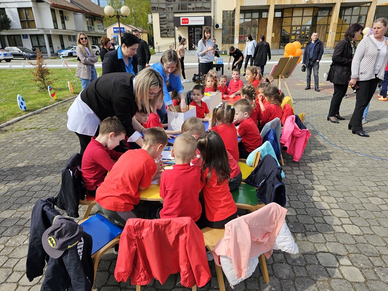 Djevojčice i dječaci iz Dječijeg vrtića “Duško Radović”, Dječijeg kluba “Piniokio” i učenici osnovci na gradskom trgu u Ugljeviku učestvuju u današnjoj radionici koja je posvećena nastupajućem prazniku Vaskrsu pod nazivom “U susret Vaskrsu bojama i maštom”.
