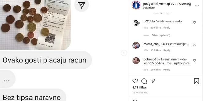 Konobari iz Crne Gore riješili su da se putem stranice Podgorički vremeplov požale na svoje bakšiše, a evo kakvi su ih komentari dočekali: