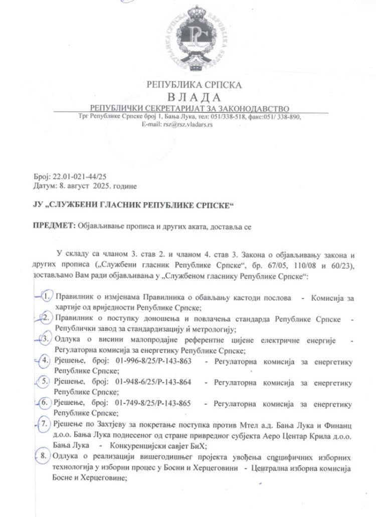 "Službeni glasnik je prema Zakonu o objavljivanju zakona i drugih propisa Republike Srpske obavezan objaviti sve što nam nam dostavi Sekretarijat za zakonodavstvo kao stručna služba Vlade Republike Srpske. Što znači da mi ne smijemo preispitivati ono što nam na objavu dostavi Sekretarijat za zakonodavstvo", rekao je za Nezavisne Miloš Lukić, v.d direktora Službenog glasnika Republike Srpske.