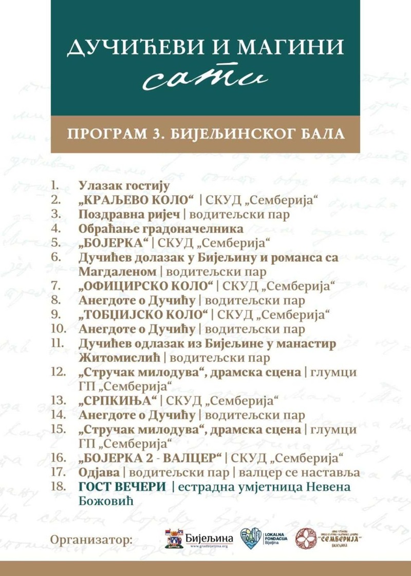 Događaj kojim će početi „Dučićevi i Magini sati“ je otvaranje izložbe pisama dvoje pjesnika u Galeriji Centra za kulturu „Semberija“ 27. novembra u 19 časova, a na tom događaju učenici Osnovne škole „Dositej Obradović“ iz Suvog Polja će izvesti dramsku minijaturu o ljubavi između Duke i Mage u stihovima.