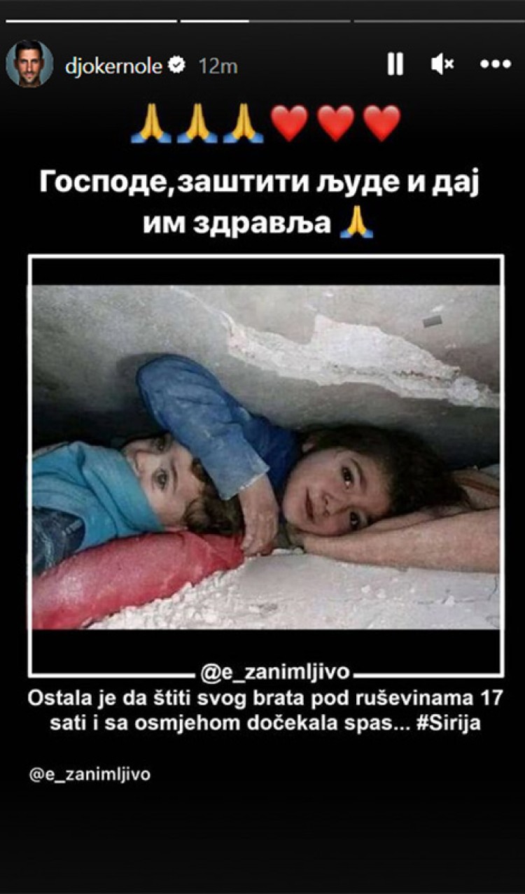 Najbolji teniser svijeta Novak Đoković poslao je snažnu poruku svim žrtvama niza zemljotresa i tragedije koja je zadesila Tursku i Siriju.