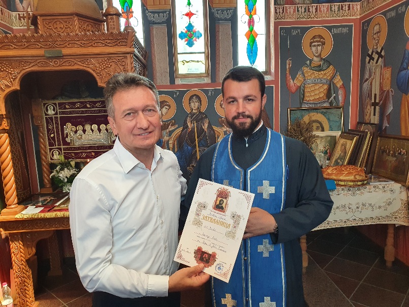 Jovičiću je za dobročinstvo i pomoć hramu dodijeljena zahvalnica.