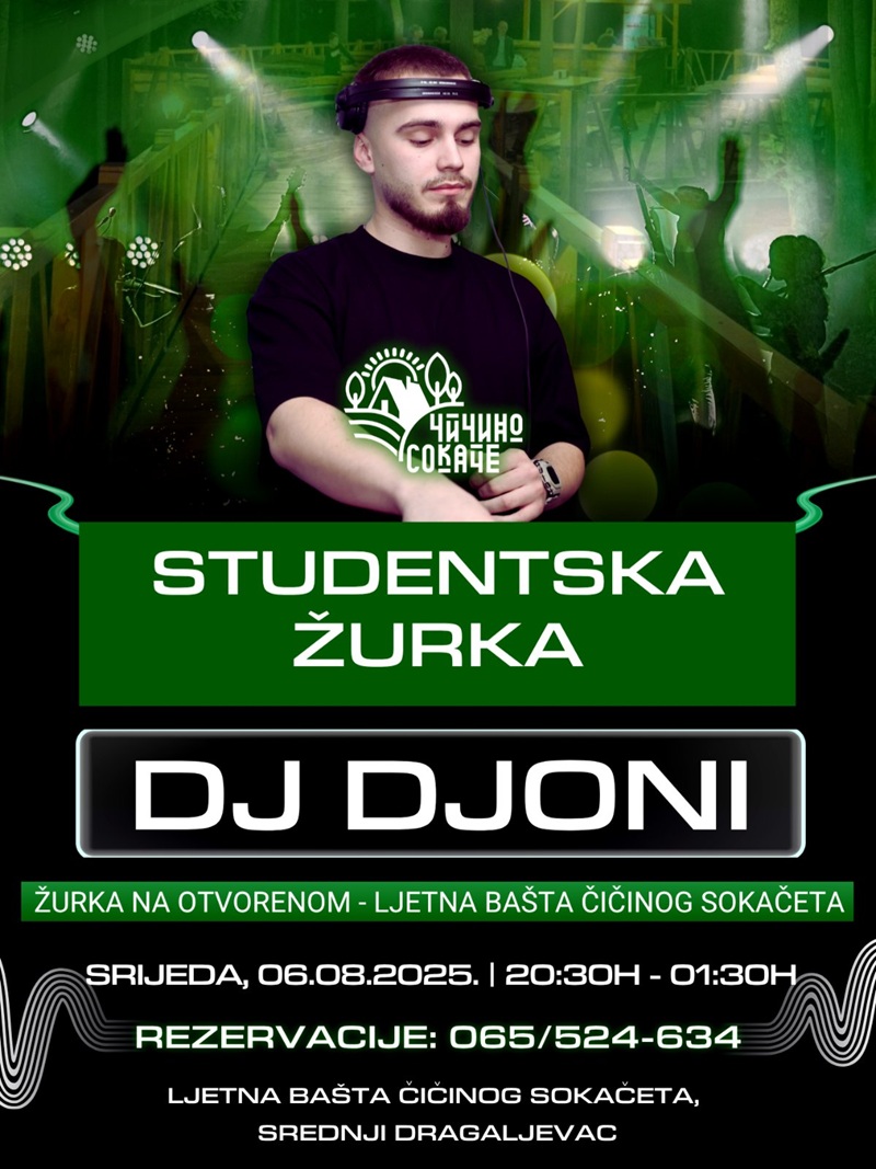 Večeras, u srijedu, u njihovoj ljetnoj bašti, opusti se i zapleši uz hitove koje ti sprema DJ Djoni.