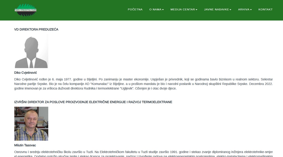 Tri mjeseca nakon što je smijenjen Diko Cvijetinović, tadašnji vršilac dužnosti direktora Rudnika i Termoelektrane (RiTE) Ugljevik, a za novog direktora postavljen Žarko Novaković, u ovom preduzeću nisu ovu bitnu činjenicu izmijenili na svom sajtu.