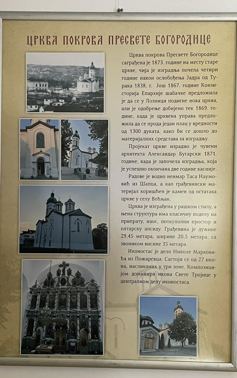 Na izložbi, čiji su autori profesori i studenti sa univerziteta iz Srbije i Republike Srpske, prikazan je istorijat crkve pokrova Presvete Bogorodice u Loznici, te su opisani i objašnjeni jezik, pismo i pravopis na natpisu koji se nalazi u crkvi, iznad ulaza. Izložba je nastala kao plod zajedničkog rada polaznika i profesora, četvrte po redu Škole istorije jezika u Tršiću.