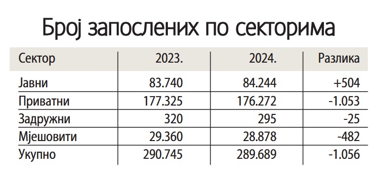 Mješoviti je, sa druge strane, broj radnika smanjio za 482, a zadružni za njih 25.