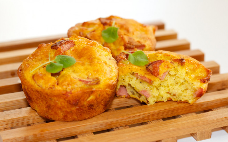 U kalup za muffine staviti papirne korpice. Svaku korpicu napuniti do pola za smjesom. Zatim u svaku korpicu žličicom staviti nadjev od sira i šunke.