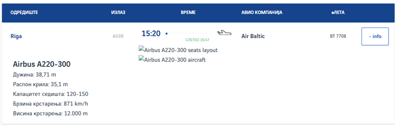 „To ne bi bio toliki problem, da istog dana avion u vlasništvu kompanije „Air Serbia“ nije poletio upravo iz Rige i sletio u 18.30 upravo u Beograd sa ukupno 111 putnika.