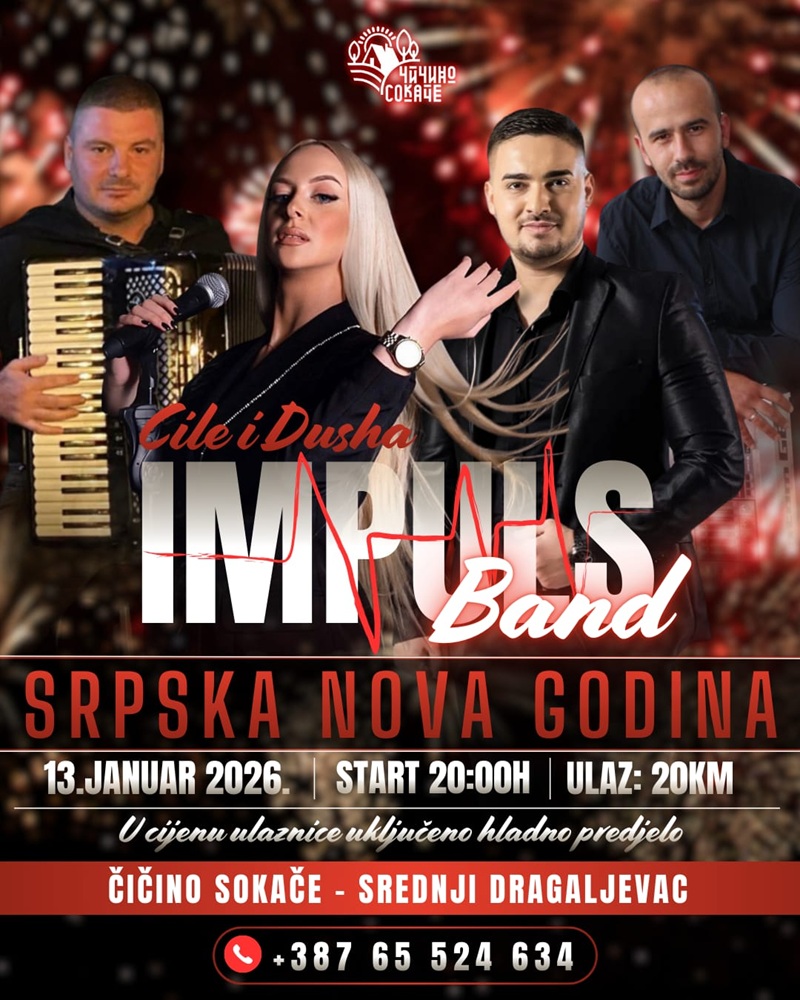 U utorak, 13. januara, od 20 časova, očekuje vas vrhunska atmosfera i brojni hitovi u izvođenju Impuls Benda.