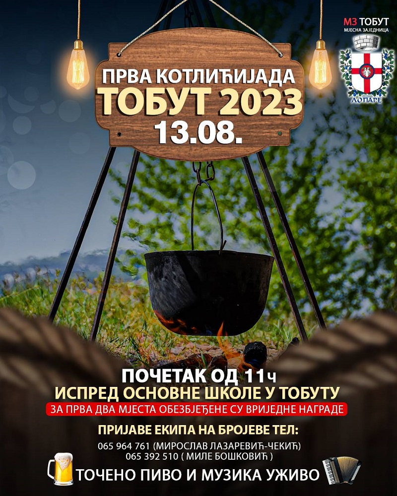 U Tobutu će 13. avgusta biti održana Prva kotlićijada „Tobut 2023“, a organizatori su za dvije najuspješnije ekipe pripremili vrijedne nagrade.