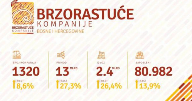 Te kompanije realizirale su 2,4 milijarde KM izvoza, što je povećanje od 26,4 posto u odnosu na 2017., a one učestvuju sa više nego značajnim procentom u ukupno angažiranoj radnoj snazi bh. ekonomije. U 2018. kompanije koje su identificirane kao brzorastuće zapošljavale su 80.982 osobe, te su u odnosu na godinu ranije povećale broj zaposlenika za 13,9 posto.