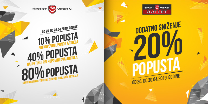 Ova specijalna sniženja možete da iskoristite u Sport Vision radnjama u Prijedoru, Banjaluci, Doboju, Bijeljini, Zvorniku, Palama i Trebinju.