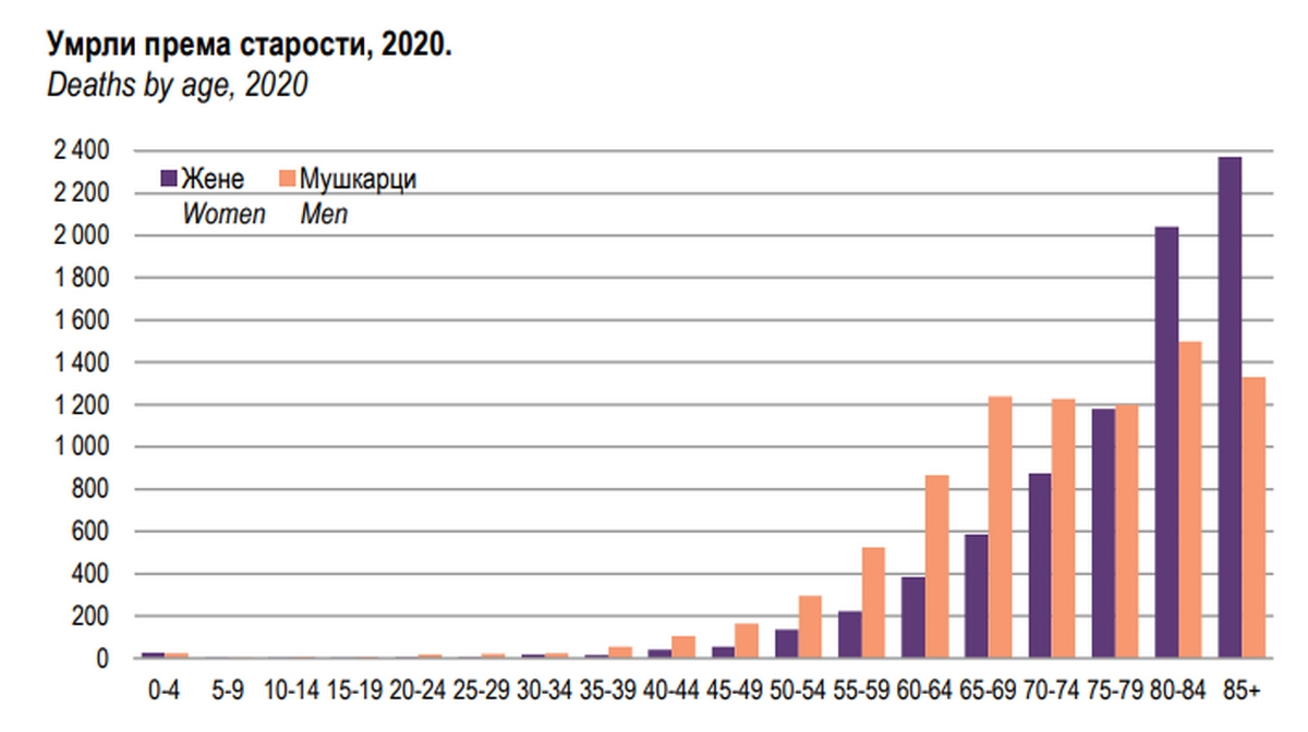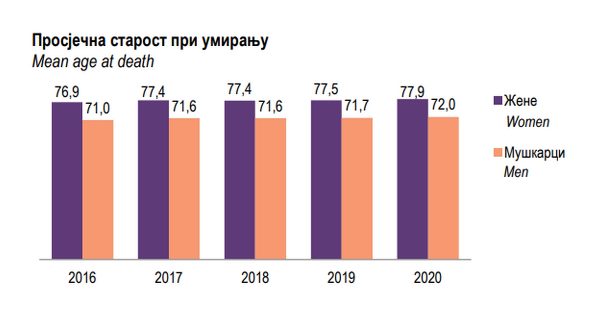 Samo nekoliko godina ranije, odnosno 2016. godine, prosječna starost pri umiranju kod muškaraca iznosila je 71 godinu, a kod žena 76,9 godina.